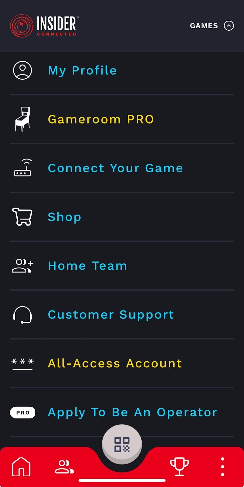 Step 1: Log into your All-Access registered Insider Connected account and enter the ‘more’ menu at the bottom right. From here, you will follow the link to ‘Gameroom PRO.’